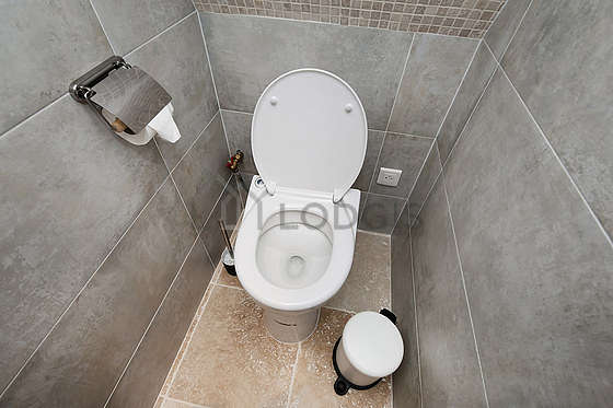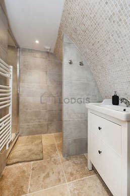 Este apartamento é equipado de uma casa de banho magnífico. Esta sala de água dispõe do necessário pelo seu bem estar na sua vida quotidiana : toalhas de banho, ducheiro separado, secador, sanibroyer, sink, sink, radiator secador de toalhas. Os WC são integrados na casa de banho.