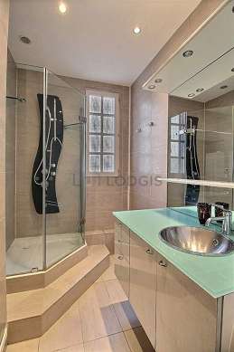 Este apartamento é equipado de uma casa de banho magnífico. Esta sala de água dispõe do necessário pelo seu bem estar na sua vida quotidiana : toalhas de banho, armário, duche balneo, sink. Os WC são separados da casa de banho e situados em uma peça independente.