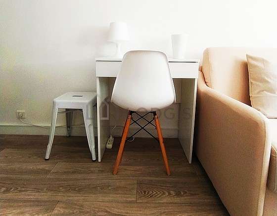 SalaõEste apartamento é composto de um charmoso salão com parqué no piso é janelas vitros duplos é vista sobre rua. Este salão very quiet mobiliado et equipado para uma agradável estância : televisaõ, lençois, colchas, sofá, 1 poltrona(s), secretária, guarda-roupa, 1 cadeira(s), floor lamp, tv stand, mirror, coat stand, bin, vase1 sofá-cama.