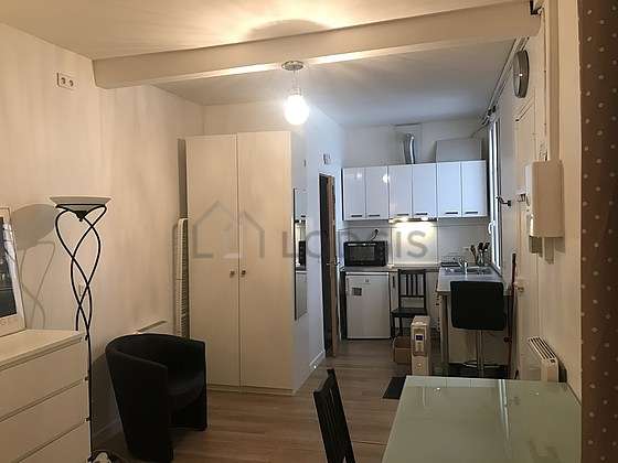 Este apartamento tem uma magnífico cozinha com parqué no piso e todo o equipamento pela sua vida quotidiana : fogaõ, frigorífico, congelador, forno, freezer, exaustur, chaleira, mesa de jantar, loiça, banco.