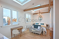 Este apartamento é equipado de uma casa de banho magnífico é muito clara with janelas vitros duplos. Esta sala de água dispõe do necessário pelo seu bem estar na sua vida quotidiana : toalhas de banho, roupeiro, armário, ducheiro separado, secador, sink, radiator secador de toalhas. Os WC são integrados na casa de banho.