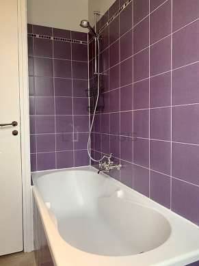Este apartamento é equipado de uma casa de banho magnífico é muito clara. Esta sala de água dispõe do necessário pelo seu bem estar na sua vida quotidiana : toalhas de banho, armário, banheira, secador, airer, sink, mirror, radiator secador de toalhas, carpet. Os WC são integrados na casa de banho.