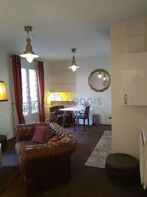 SalaõEste apartamento é composto de um atraente salão com alcatifa no piso é janelas vitros duplos. Este salão very quiet mobiliado et equipado para uma agradável estância : televisaõ, frigorífico, sofá, mesa de jantar, secretária, biblioteca, loiça, 1 cadeira(s), floor lamp, tv stand, mirror, coat stand, bin, pouffe.