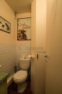 Este apartamento é equipado de uma casa de banho magnífico. Esta sala de água dispõe do necessário pelo seu bem estar na sua vida quotidiana : prateleira, armário, banheira, sink. Os WC são separados da casa de banho e situados em uma peça independente.