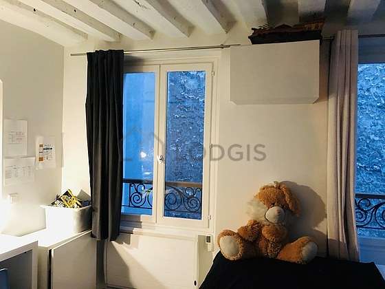 Vista sobre rua, este quarto esplêndido oferece o equipamento necessário para descansar durante sua estância : lençois, colchas, roupeiro, prateleira, guarda-roupa, armário1 cama.