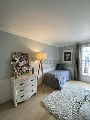 Com parqué no piso vista sobre rua, este quarto esplêndido oferece o equipamento necessário para descansar durante sua estância : colchas, roupeiro, comoda, chaminé, floor lamp, mirror, vase1 cama.