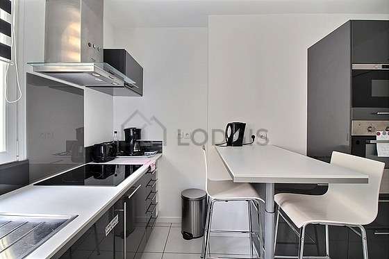 Este apartamento tem uma magnífico cozinha com azuleijo no piso e todo o equipamento pela sua vida quotidiana : fogaõ, frigorífico, congelador, forno, microondas, exaustur, torradeira, chaleira, máquina de café, mesa de jantar, armário, loiça, 1 cadeira(s).