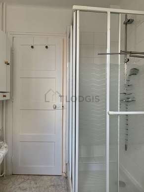 Este apartamento é equipado de uma casa de banho magnífico é muito clara. Esta sala de água dispõe do necessário pelo seu bem estar na sua vida quotidiana : toalhas de banho, prateleira, armário, ducheiro separado, airer, sink, mirror, towel rack, bin, carpet. Os WC são integrados na casa de banho.