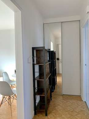 Este apartamento dispõe tambéma entrada equipada de roupeiro, prateleira, armário, mirror.