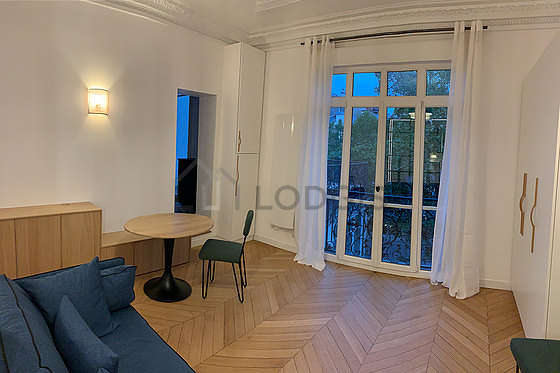 Este apartamento é composto de um bonito salão com parqué no piso é janelas vitros duplos. Este salão very quiet mobiliado et equipado para uma agradável estância : sofá, mesa de jantar, biblioteca, prateleira, guarda-roupa, comoda, armário, 1 cadeira(s), mirror.