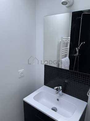 Este apartamento é equipado de uma casa de banho magnífico. Esta sala de água dispõe do necessário pelo seu bem estar na sua vida quotidiana : toalhas de banho, guarda-roupa, comoda, ducheiro separado, sink, sink, radiator secador de toalhas. Os WC são integrados na casa de banho.