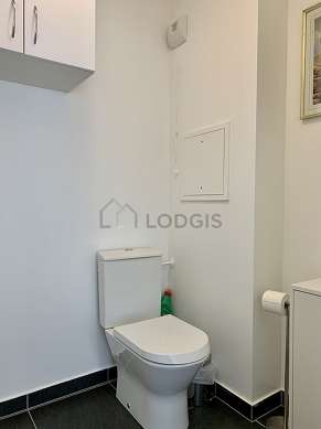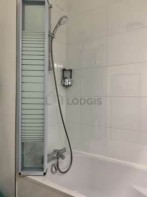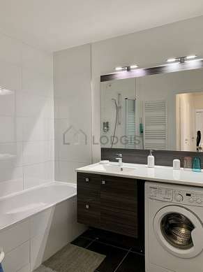 Este apartamento é equipado de uma casa de banho magnífico é muito clara. Esta sala de água dispõe do necessário pelo seu bem estar na sua vida quotidiana : toalhas de banho, banheira, secador, airer, sink, mirror, bin, radiator secador de toalhas. Os WC são separados da casa de banho e situados em uma peça independente.
