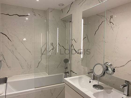 Este apartamento é equipado de uma casa de banho. Esta sala de água dispõe do necessário pelo seu bem estar na sua vida quotidiana. Os WC são separados da casa de banho e situados em uma peça independente.