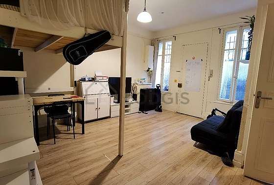 SalaõEste apartamento é composto de um salão com parqué no piso é janelas é vista sobre pátio. Este salão mobiliado et equipado para uma agradável estância : lençois, colchas, sofá, secretária, roupeiro, prateleira, comoda, armário, 1 cadeira(s)1 cama em mezanino.