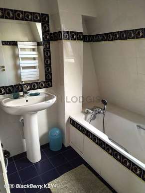 Este apartamento é equipado de uma casa de banho magnífico é muito clara. Esta sala de água dispõe do necessário pelo seu bem estar na sua vida quotidiana : prateleira, armário, banheira, banco, sink, mirror, bin, radiator secador de toalhas. Os WC são separados da casa de banho e situados em uma peça independente.