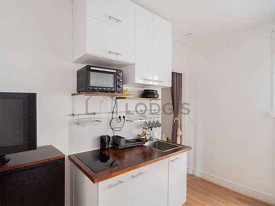 Este apartamento tem uma magnífico cozinha com parqué no piso e todo o equipamento pela sua vida quotidiana : fogaõ, frigorífico, forno, chaleira, máquina de café, mesa de jantar, prateleira, armário, loiça, 2 cadeira(s).