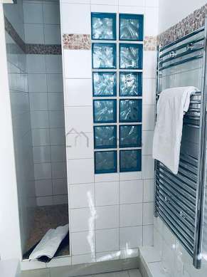 Este apartamento é equipado de uma casa de banho magnífico é clara. Esta sala de água dispõe do necessário pelo seu bem estar na sua vida quotidiana : toalhas de banho, comoda, ducheiro separado, secador, sink, radiator secador de toalhas. Os WC são integrados na casa de banho.