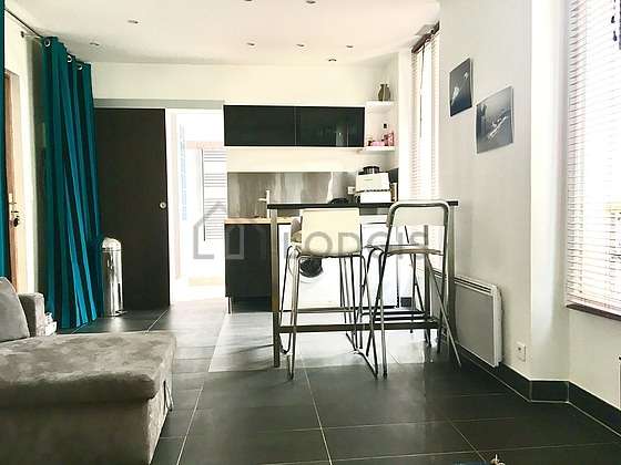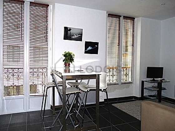 SalaõEste apartamento é composto de um charmoso salão com azuleijo no piso é janelas. Este salão very quiet mobiliado et equipado para uma agradável estância : televisaõ, sofá, mesa de jantar, mesinha, loiça, 1 cadeira(s).