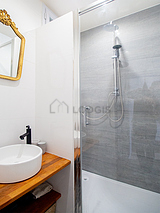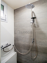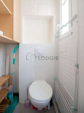 Este apartamento é equipado de uma casa de banho magnífico é muito clara with janelas vitros duplos. Esta sala de água dispõe do necessário pelo seu bem estar na sua vida quotidiana : toalhas de banho, prateleira, ducheiro separado, secador, sink, radiator secador de toalhas, ceiling light, carpet, vase. Os WC são separados da casa de banho e situados em uma peça independente.