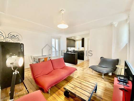 SalaõEste apartamento é composto de um bonito salão com parqué no piso é janelas. Este salão very quiet mobiliado et equipado para uma agradável estância : televisaõ, sofá, 1 poltrona(s), mesa de jantar, secretária, prateleira, guarda-roupa, armário, loiça, 1 cadeira(s).