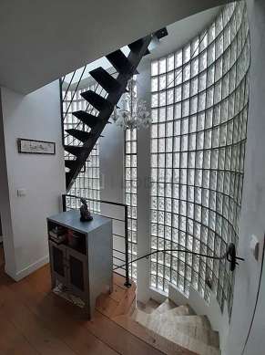 Este loft é equipado de uma casa de banho. Esta sala de água dispõe do necessário pelo seu bem estar na sua vida quotidiana : roupeiro, guarda-roupa, armário, banheira, ducheiro separado, secador, sink, radiator secador de toalhas. Os WC são separados da casa de banho e situados em uma peça independente.