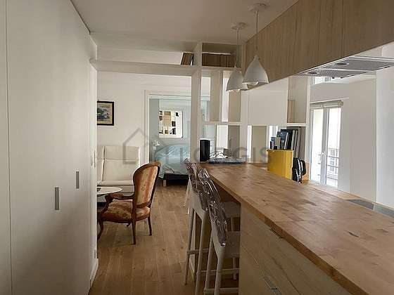 SalaõEste apartamento é composto de um magnífico salão com parqué no piso é janelas. Este salão very quiet mobiliado et equipado para uma agradável estância : televisaõ, frigorífico, sofá, 1 poltrona(s), mesa de jantar, roupeiro, prateleira, armário, loiça, 1 cadeira(s), banco, painting.