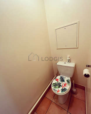 Este apartamento é equipado de uma casa de banho. Esta sala de água dispõe do necessário pelo seu bem estar na sua vida quotidiana : armário, banheira, airer, sink, towel rack, light. Os WC são separados da casa de banho e situados em uma peça independente.