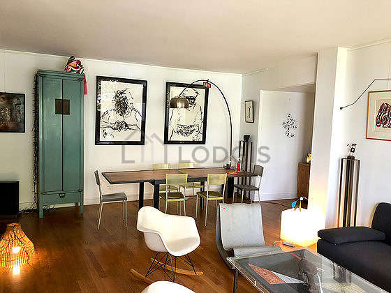 Este apartamento é composto de um bonito salão com parqué no piso é janelas. Este salão very quiet mobiliado et equipado para uma agradável estância : sofá, mesa de jantar, mesinha, secretária, prateleira, armário, 1 cadeira(s), banco.