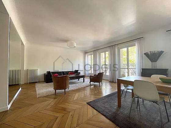 Boulevard Saint Michel, 5ème, en face des Jardins du Luxembourg, au 1er étage avec ascenseur d'un bel immeuble haussmanien avec gardien, un appartement familial de standing de 133 m2 meublé, traversant, composé d'une grande entrée, un double séjour avec nombreuses fenêtres et vue dégagée sur Le luxembourg, une suite parentale avec espace bureau, salle de douche et toilettes séparées, deux chambres, une salle de bains avec toilettes. Cuisine séparée.