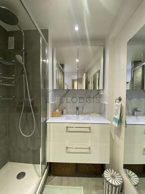 Este apartamento é equipado de uma casa de banho magnífico é muito clara. Esta sala de água dispõe do necessário pelo seu bem estar na sua vida quotidiana : ducheiro separado, sink, radiator secador de toalhas. Os WC são separados da casa de banho e situados em uma peça independente.