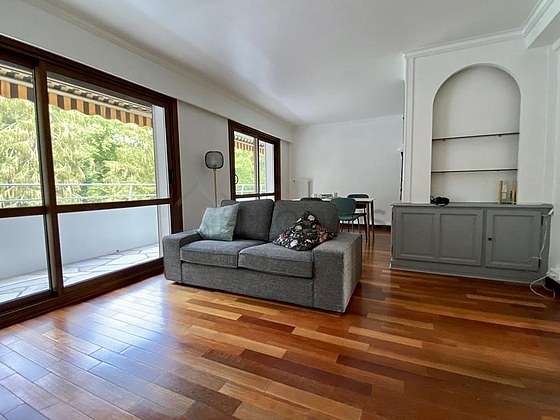 SalaõEste apartamento é composto de um magnífico salão com parqué no piso é janelas com balcão é vista sobre jardim. Este salão very quiet mobiliado et equipado para uma agradável estância : televisaõ, sofá, mesa de jantar, biblioteca, prateleira, 4 cadeira(s), floor lamp, lamp, tv stand.