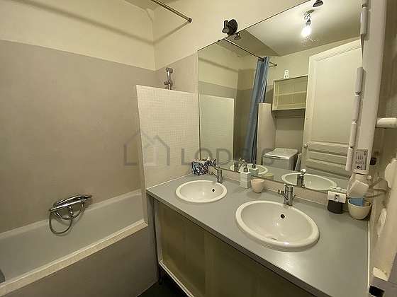 Este apartamento é equipado de uma casa de banho. Esta sala de água dispõe do necessário pelo seu bem estar na sua vida quotidiana : armário, banheira, sink. Os WC são separados da casa de banho e situados em uma peça independente.