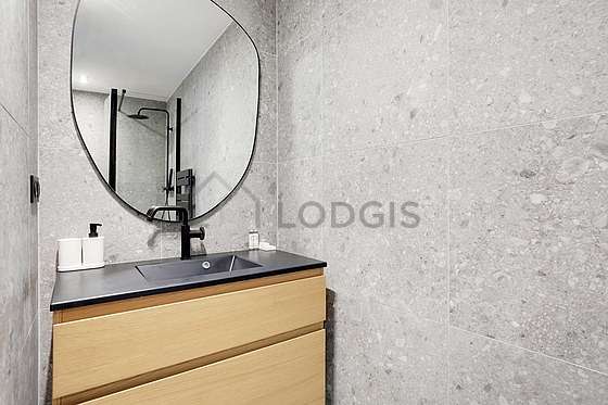 Este apartamento é equipado de uma casa de banho magnífico é muito clara. Esta sala de água dispõe do necessário pelo seu bem estar na sua vida quotidiana : toalhas de banho, ducheiro separado, sink, radiator secador de toalhas. Os WC são separados da casa de banho e situados em uma peça independente.