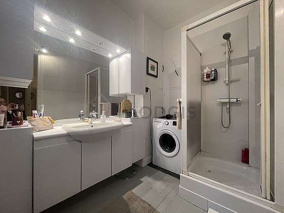 Este apartamento é equipado de uma casa de banho. Esta sala de água dispõe do necessário pelo seu bem estar na sua vida quotidiana : ducheiro separado, sink. Os WC são separados da casa de banho e situados em uma peça independente.
