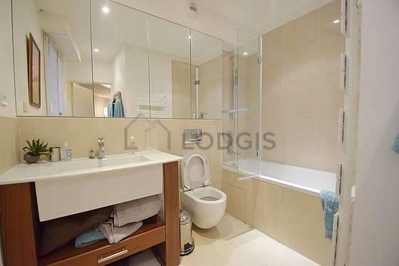 Este dúplex é equipado de uma casa de banho. Esta sala de água dispõe do necessário pelo seu bem estar na sua vida quotidiana : ducheiro separado, sink, radiator secador de toalhas. Os WC são separados da casa de banho e situados em uma peça independente.