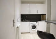 Este apartamento tem uma cozinha e todo o equipamento pela sua vida quotidiana : fogaõ, frigorífico, congelador, forno, micro-ondas combinado, torradeira, chaleira, máquina de café, loiça.