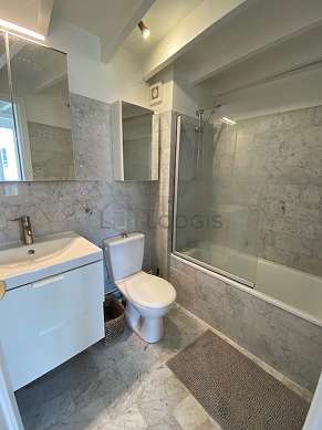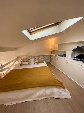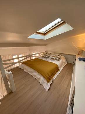 Graças a sua altura de teto, um mezanino foi possível de ser instalado em este apartamento , oferecendo-lhe uma verdadeira peça suplementar equipada de colchas.