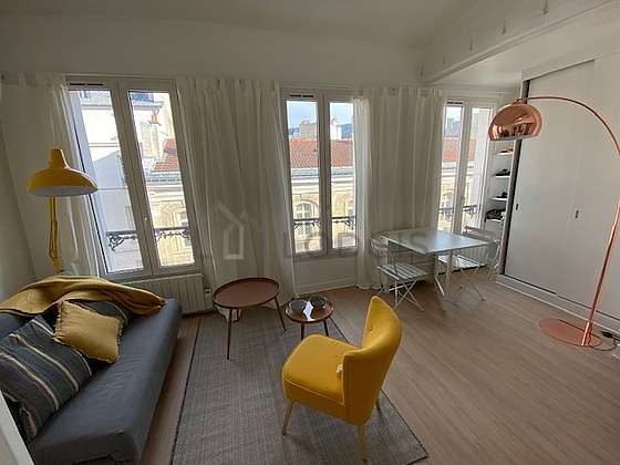 SalaõEste apartamento é composto de um salão janelas. Este salão mobiliado et equipado para uma agradável estância : lençois, sofá, secretária, biblioteca, prateleira, guarda-roupa, comoda, 1 cadeira(s), mesinha de cabeceira.