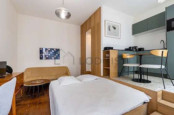 Este apartamento tem uma cozinha e todo o equipamento pela sua vida quotidiana : fogaõ, frigorífico, congelador, forno, microondas, exaustur, torradeira, chaleira, máquina de café, mesa de jantar, armário, loiça, 1 cadeira(s).