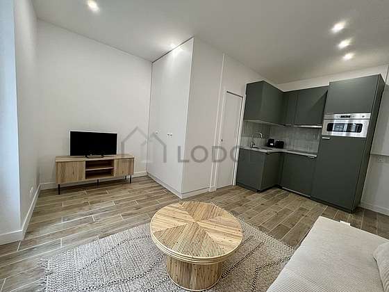 SalaõEste apartamento é composto de um bonito salão com parqué no piso é janelas. Este salão very quiet mobiliado et equipado para uma agradável estância : televisaõ, lençois, sofá, mesinha, roupeiro, prateleira, guarda-roupa, armário, tv stand, carpet1 sofá-cama.