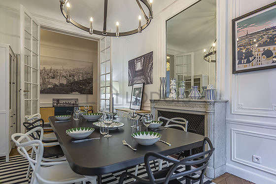 A fim de partilhar suas refeições no ambiente de convivialidade durante sua estância parisiense, este apartamento dispõe de uma magnífico sala de jantar que pode acolher até 8 convivas graças a mesa de jantar, 8 cadeira(s).
