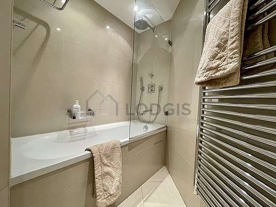 Este apartamento é equipado de uma casa de banho magnífico é muito clara. Esta sala de água dispõe do necessário pelo seu bem estar na sua vida quotidiana : banheira, radiator secador de toalhas. Os WC são separados da casa de banho e situados em uma peça independente.