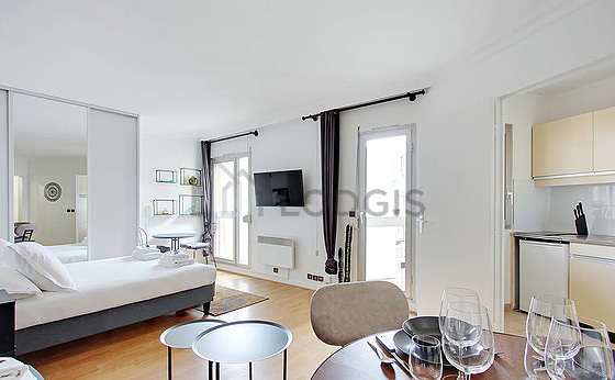 SalaõEste apartamento é composto de um salão janelas. Este salão mobiliado et equipado para uma agradável estância : televisaõ, sofá, mesa de jantar, mesinha, guarda-roupa, 1 cadeira(s)1 sofá-cama.