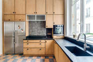 Este apartamento tem uma cozinha e todo o equipamento pela sua vida quotidiana : fogaõ, frigorífico, congelador, forno, microondas, exaustur, torradeira, chaleira, máquina de café, loiça.