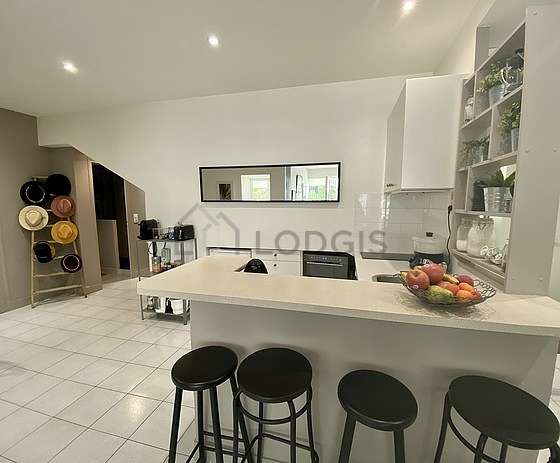 Este apartamento tem uma magnífico cozinha com azuleijo no piso e todo o equipamento pela sua vida quotidiana : fogaõ, frigorífico, micro-ondas combinado, freezer, exaustur, torradeira, chaleira, máquina de café, mesa de jantar, prateleira, armário, loiça, 4 cadeira(s), banco, bar.