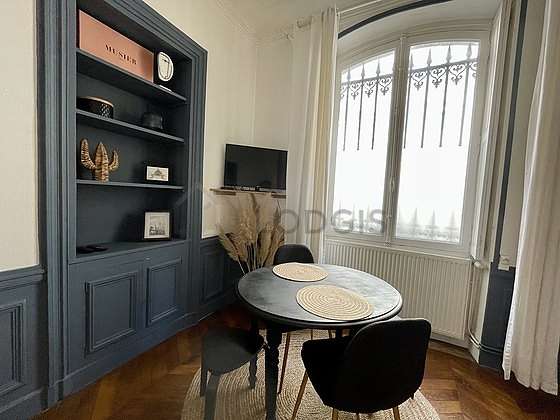 SalaõEste apartamento é composto de um soberbo salão com parqué no piso é janelas. Este salão very quiet mobiliado et equipado para uma agradável estância : sofá, mesa de jantar, mesinha, 1 cadeira(s)1 cama.