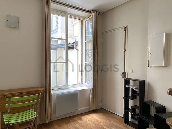 SalaõEste apartamento é composto de um atraente salão com parqué no piso é janelas vitros duplos é vista sobre pátio. Este salão calmo mobiliado et equipado para uma agradável estância : lençois, colchas, mesinha, secretária, 1 cadeira(s)1 cama.