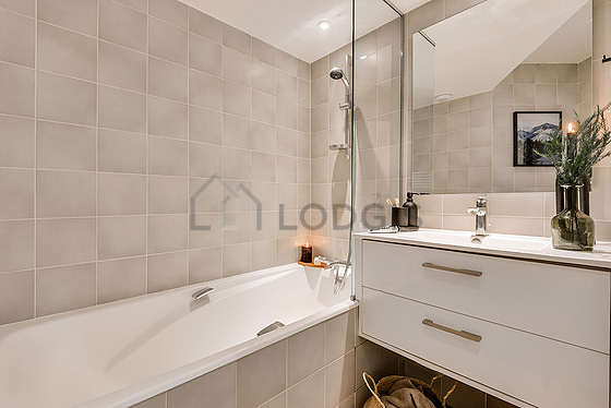 Este apartamento é equipado de uma casa de banho. Esta sala de água dispõe do necessário pelo seu bem estar na sua vida quotidiana : banheira, sink. Os WC são separados da casa de banho e situados em uma peça independente.