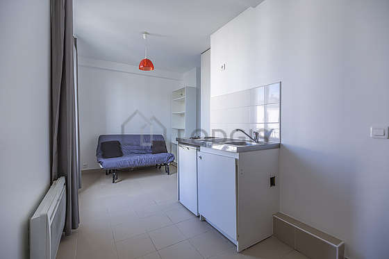 Este apartamento tem uma magnífico cozinha com azuleijo no piso e todo o equipamento pela sua vida quotidiana : frigorífico, mesa de jantar, 1 cadeira(s).