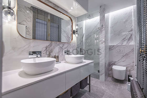 Este apartamento é equipado de uma casa de banho. Esta sala de água dispõe do necessário pelo seu bem estar na sua vida quotidiana : ducheiro separado. Os WC são integrados na casa de banho.